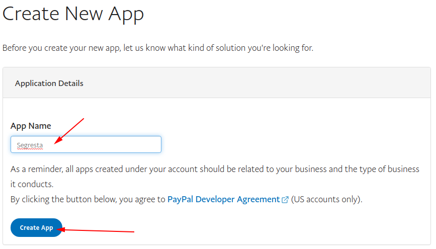 Inserisci il nome dell'applicazione (Segresta) e clicca su